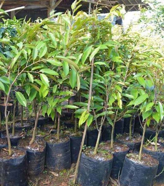 Bibit bisa tumbuh di pot. Namun akan lebih optimal jika bibit durian ditanam langsung di tanah.